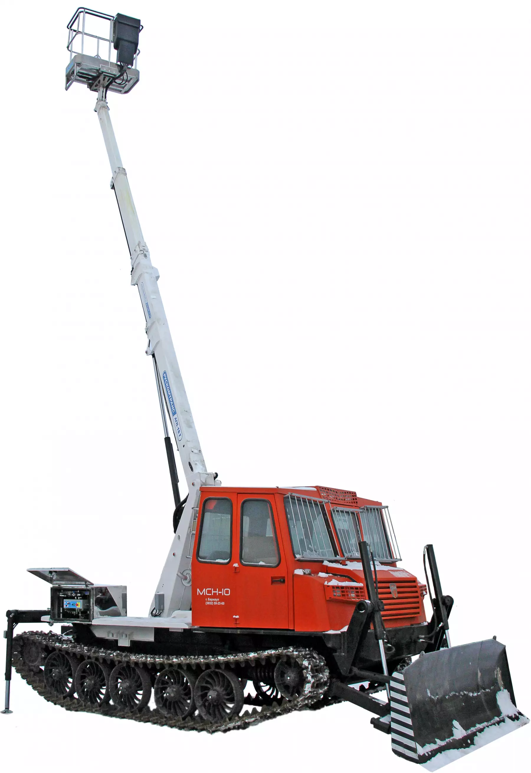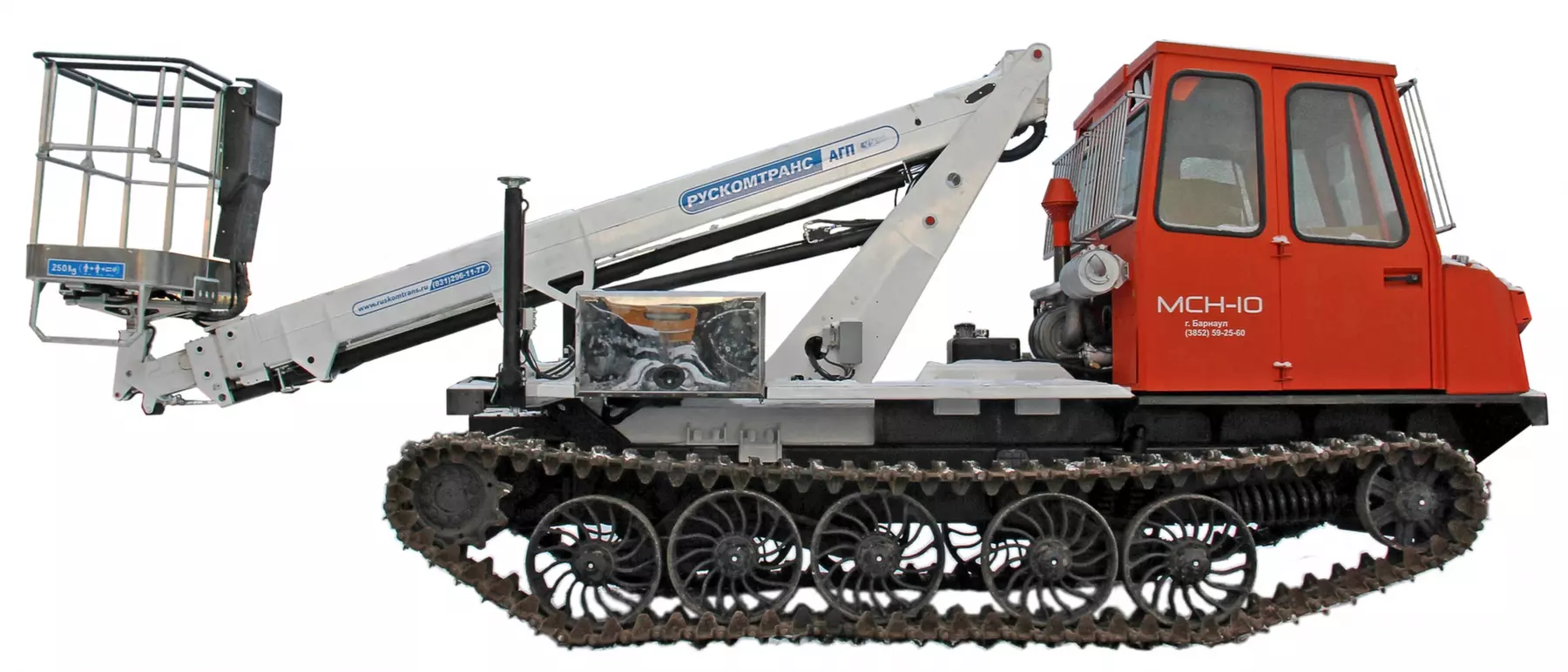 Автогидроподъемник телескопический АГП-22Т на шасси трактора МСН-10 предназначен для проведения строительных и эксплуатационных работ, требующих подъема людей с материалами и инструментами на высоту до 22 м (иная высота по запросу). Преимуществами такой конфигурации автогидроподъемника являются: компактность в транспортном положении, что позволяет сохранить проходимость базового шасси; небольшой опорный контур позволяет работать в стесненных условиях при хорошем боковом вылете стрелы; не перекрывается стрелой кабина, всегда есть свободный доступ к двигателю.