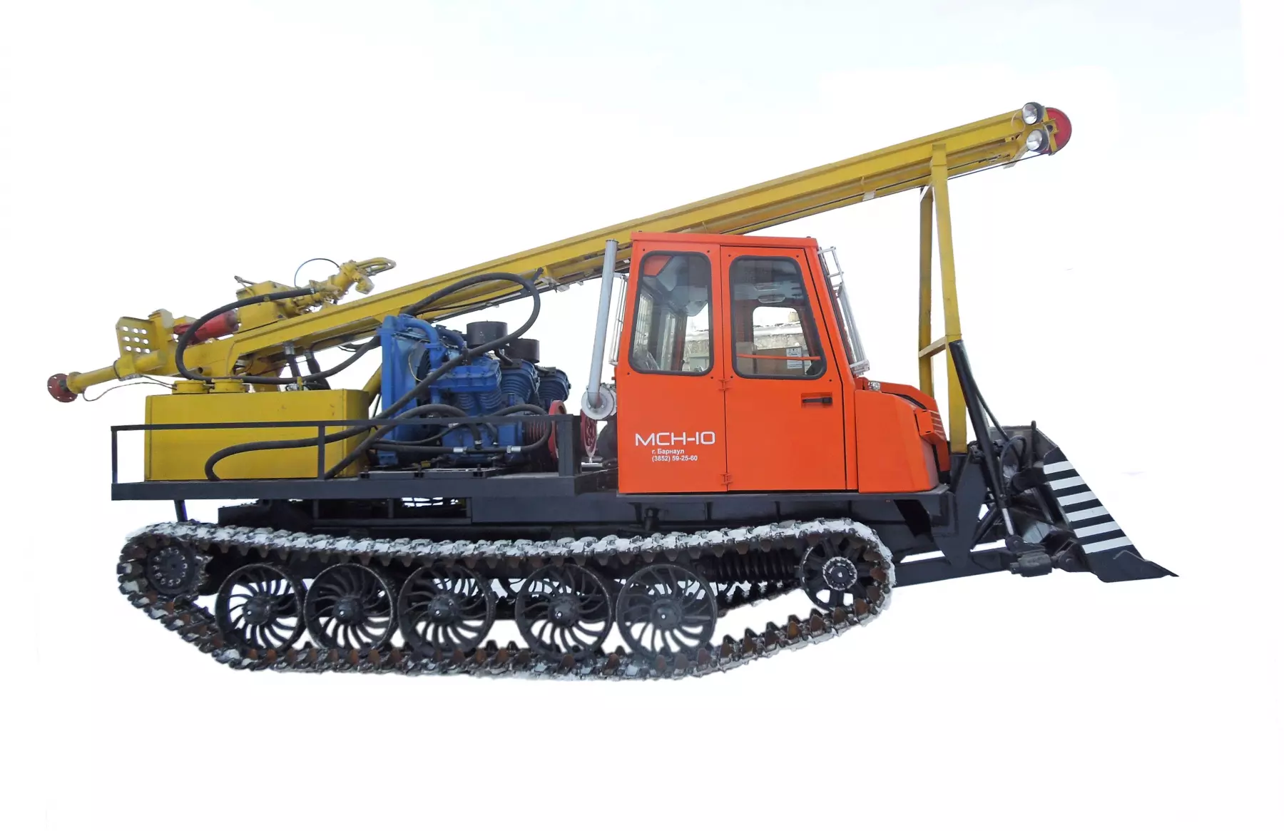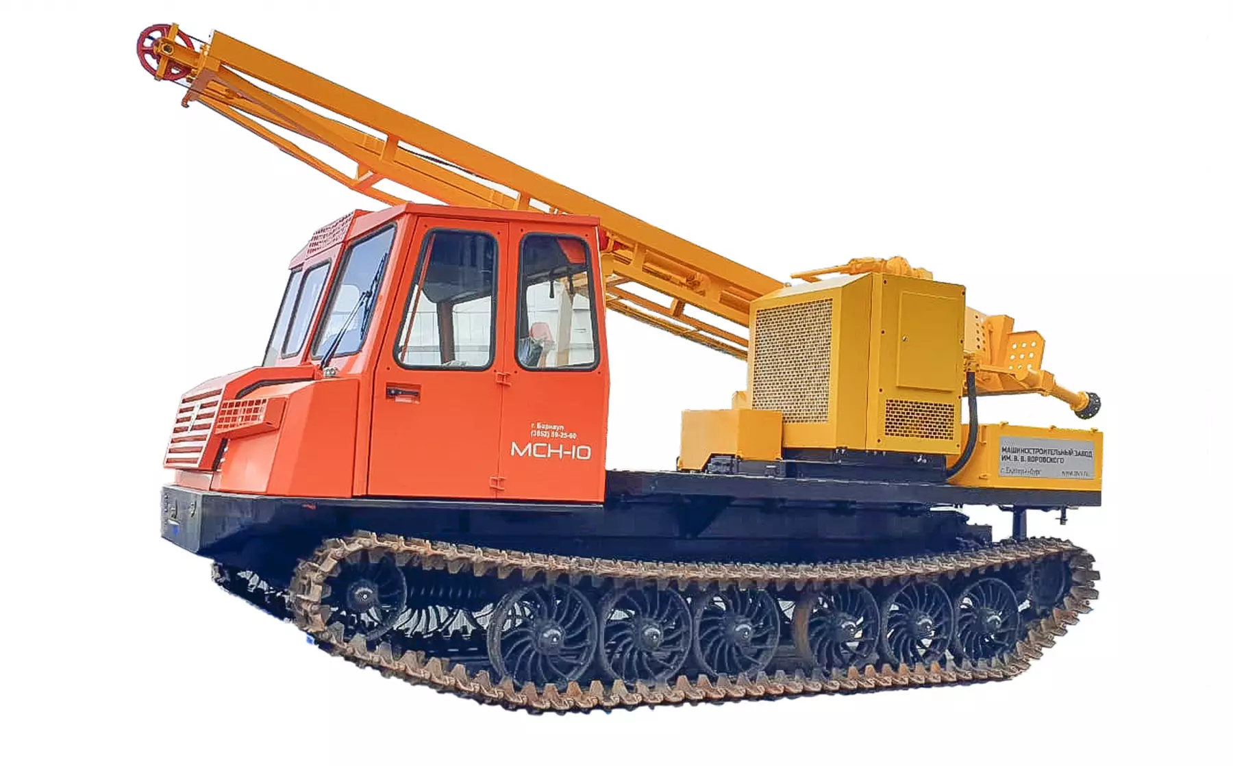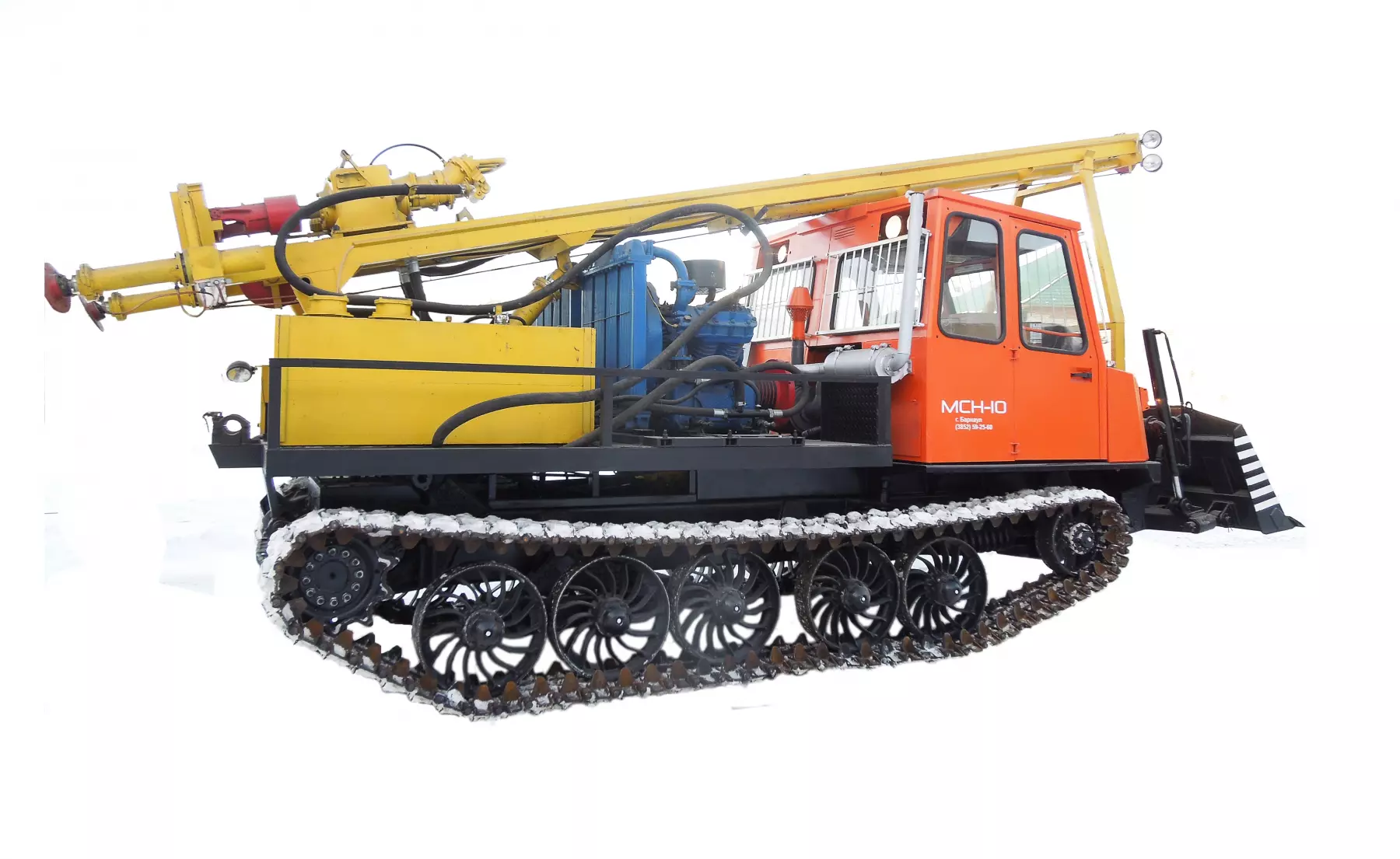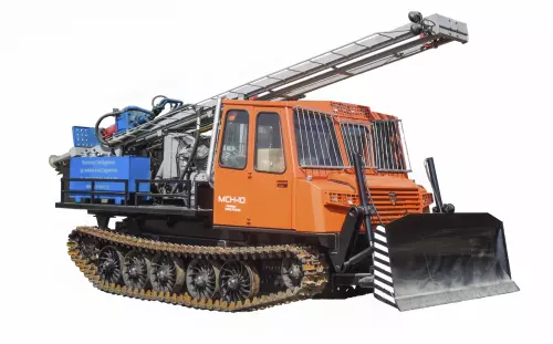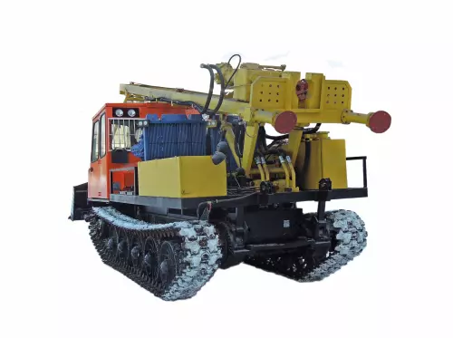 Буровая установка УРБ-4Т смонтирована на раме высокопроходимого гусеничного шасси МСН-10 Привод рабочего оборудования от ДВС базового шасси.