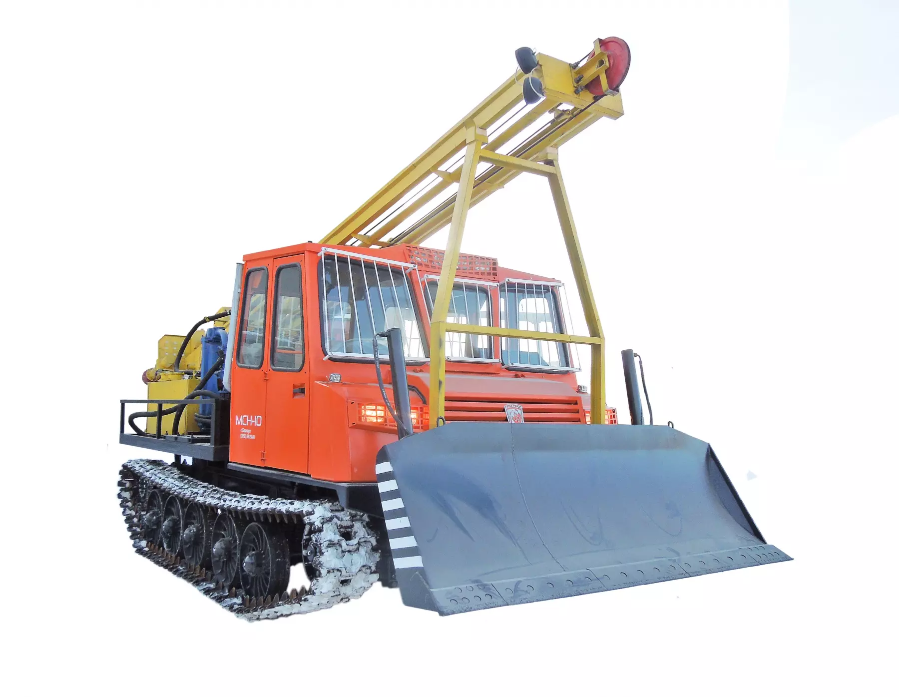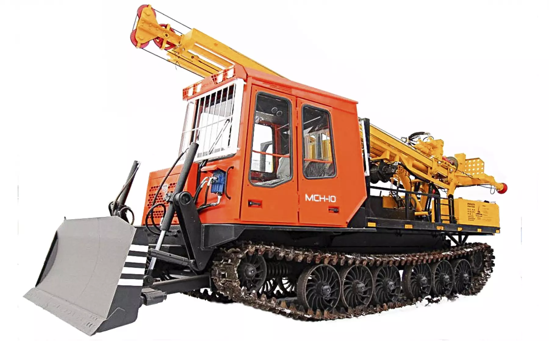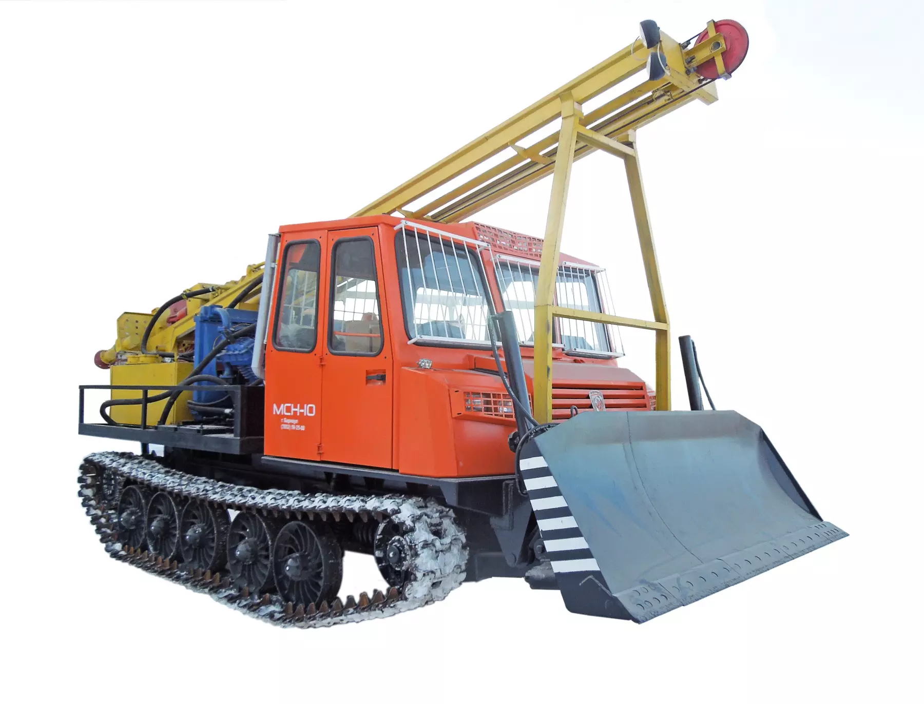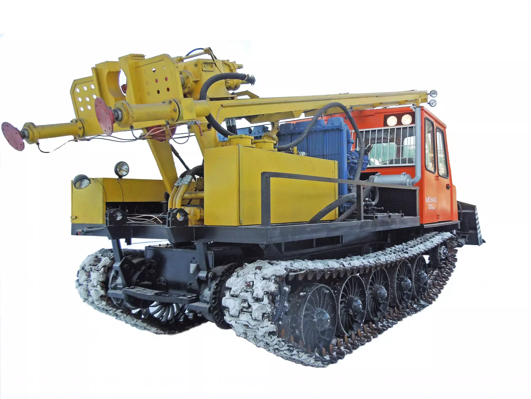 Буровая установка УРБ-4Т смонтирована на раме высокопроходимого гусеничного шасси МСН-10 Привод рабочего оборудования от ДВС базового шасси.