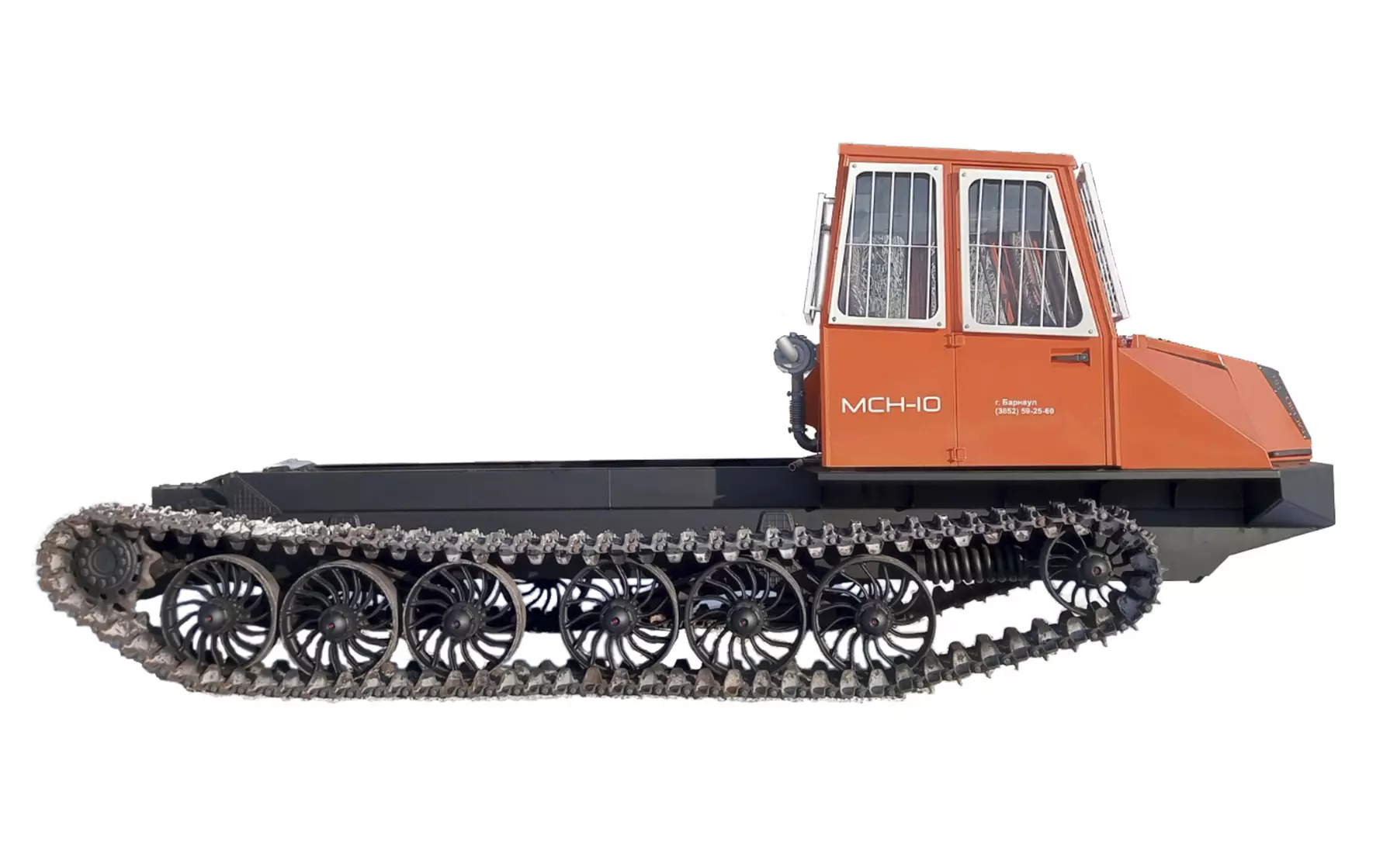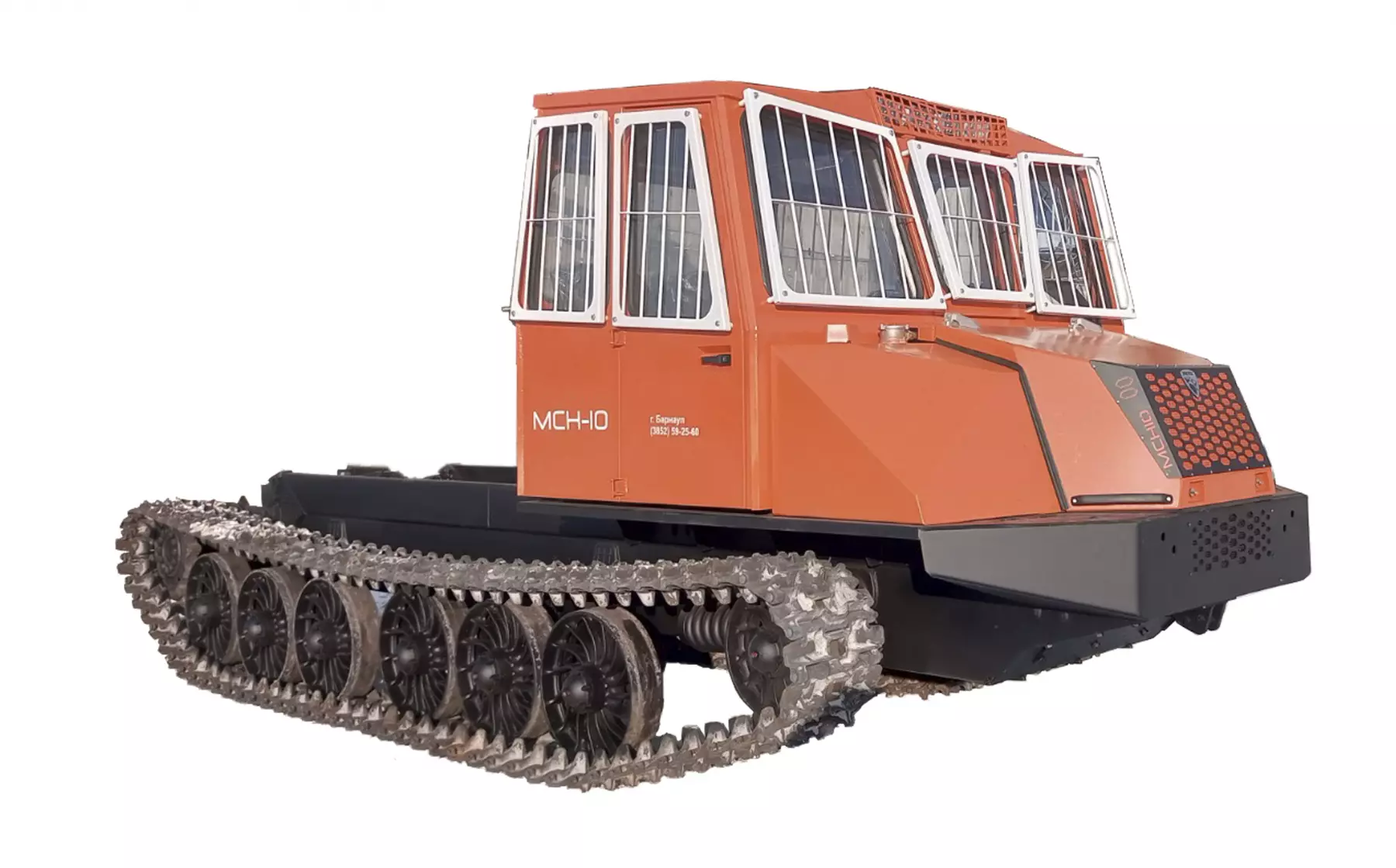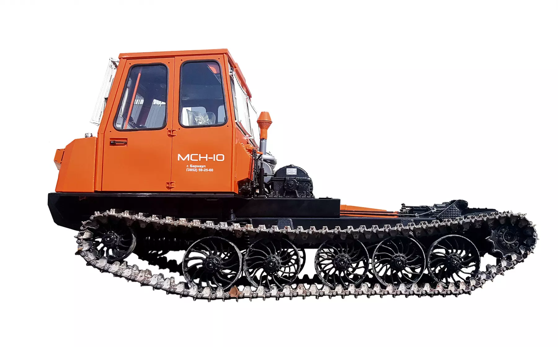 Трактор имеет современный внешний вид, и соответствует актуальным стандартам безопасности. Одноместная модульная кабина обеспечивает достаточно высокий уровень комфорта для оператора. Эргономичное рабочее место оснащено поворотным сиденьем и дополнительным задним постом управления навесным оборудованием. Кабина оборудована встроенным каркасом безопасности и высокопрочными стеклами «триплекс», обеспечивающими защиту оператора. Современные приборы освещения обеспечивают отличную видимость рабочей зоны в темное время суток. Расположение кабины в передней части трактора обеспечивает оптимальный обзор и предоставляет обширное пространство за кабиной для установки различного технологического оборудования. На шасси МСН-10 устанавливаются дизельные двигатели А-01 МРСИ-2 или ЯМЗ-236М2 (по выбору заказчика), которые хорошо зарекомендовали себя в самых суровых условиях эксплуатации.