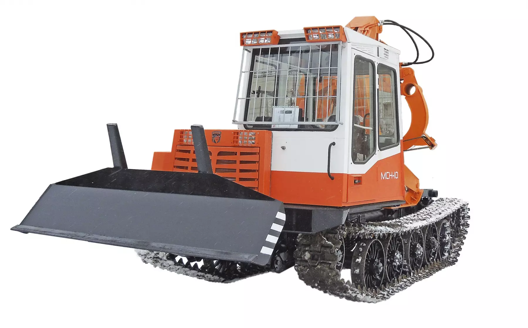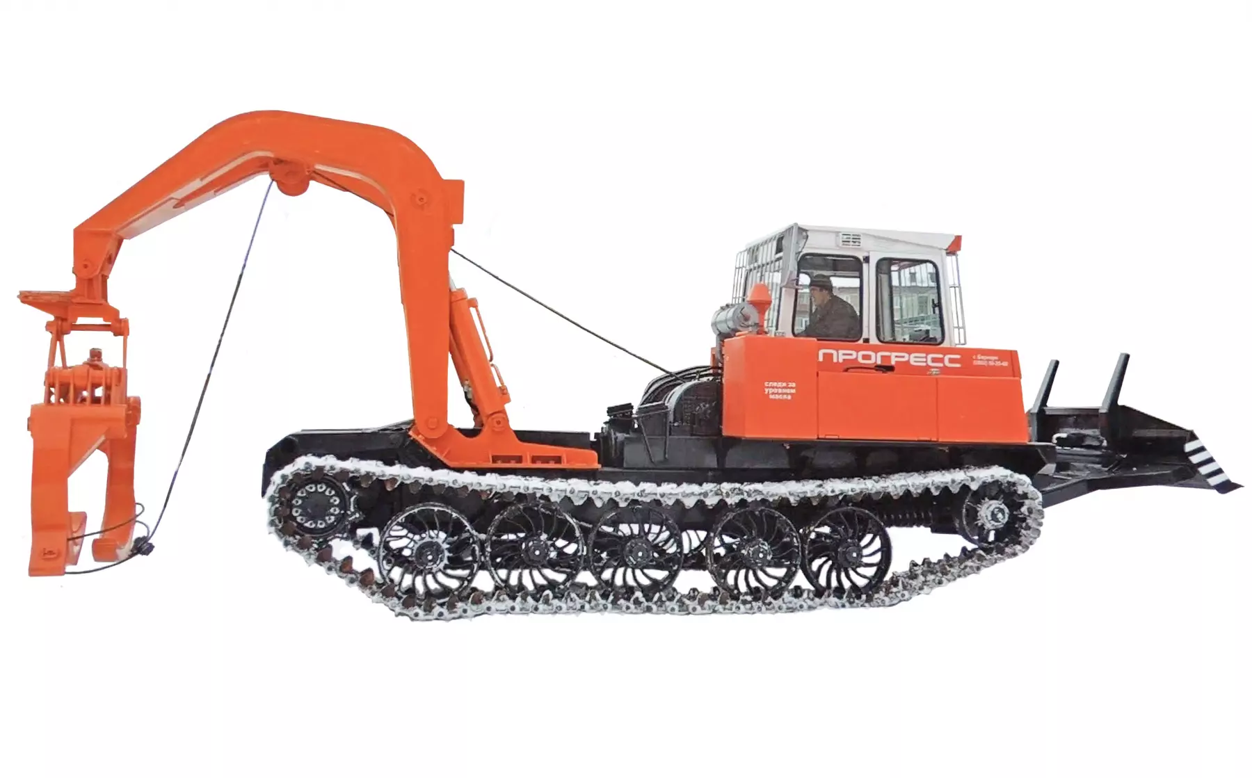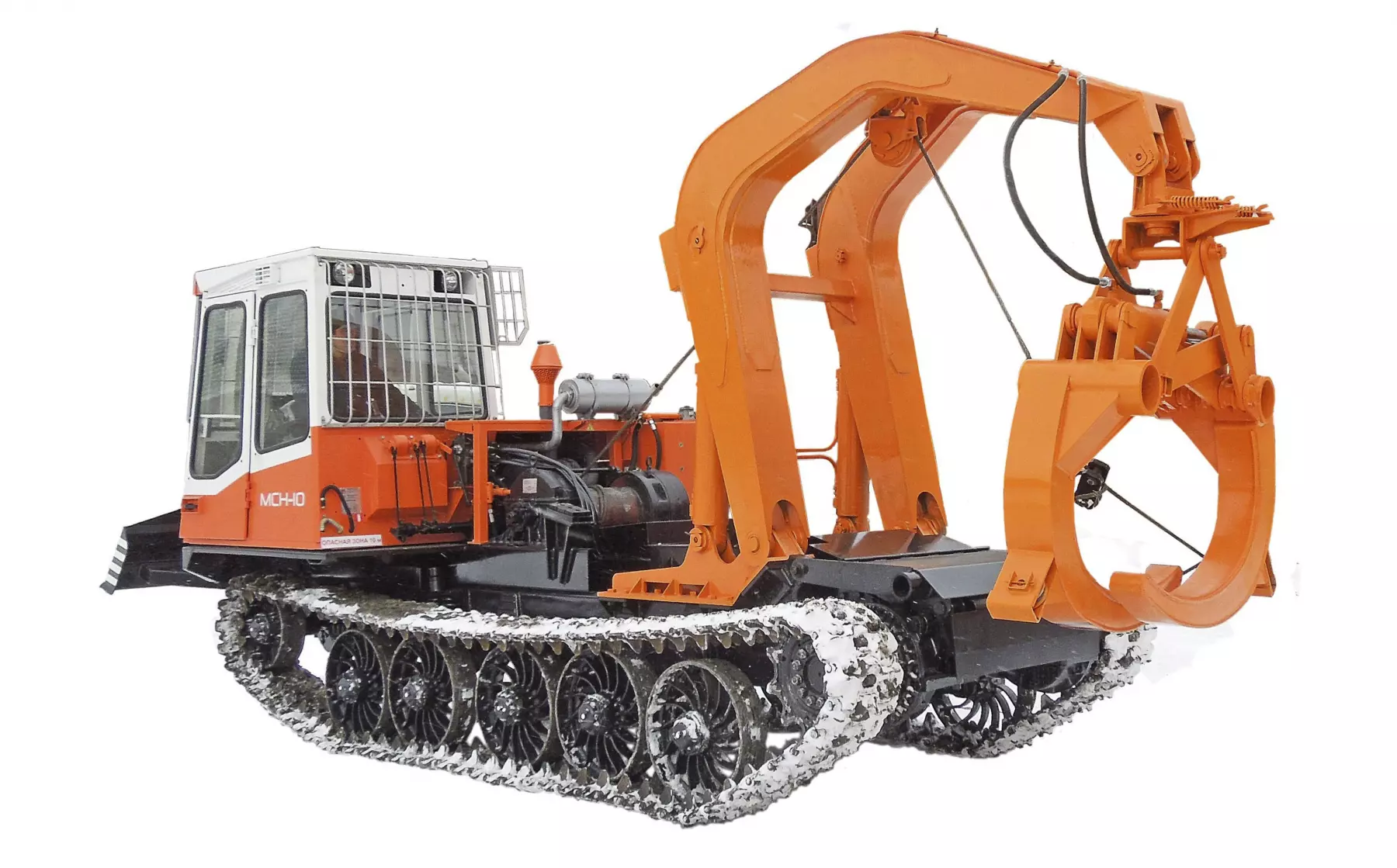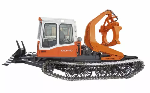 Навесное оборудование, состоящее из стрелы, захвата, механизма привода захвата, гидросистемы и защитных устройств смонтировано на шасси лесопромышленного трелевочного трактора МСН-10 (усовершенствованный аналог трактора ТТ-4М). Гидросистема обеспечивает плавность и точность движения рабочих органов. Наличие гидравлического захвата позволяет исключить применение ручного труда при зацепке и отцепке пачек деревьев. Трактор оборудован прочным передним толкателем и может производить ряд вспомогательных работ: выравнивание торцов комлей хлыстов на погрузочной площадке, поперечное перемещение деревьев с целью подачи их в зону работы сучкорезной машины толкателем или отвозку в захвате.